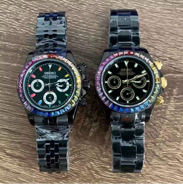 New watch quartz movement VK63 movement 39mm electroplated color diamond black gold stainless steel case sapphire glass$108.00选择选项